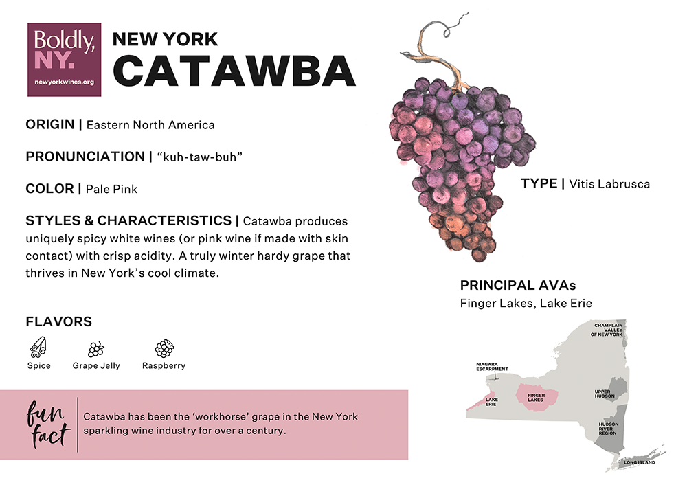 ブドウ栽培: カタウバは耐寒性があり、樹勢の強いヴィティス・ラブルスカ品種です。「スリップスキン」と呼ばれる果皮と果肉が簡単に剥がせる構造を持つ、大粒の赤みがかったピンク色のブドウで、ほどほどの収量があります。この北アメリカ原産の品種は成熟が遅く、長い生育期間を必要とします。