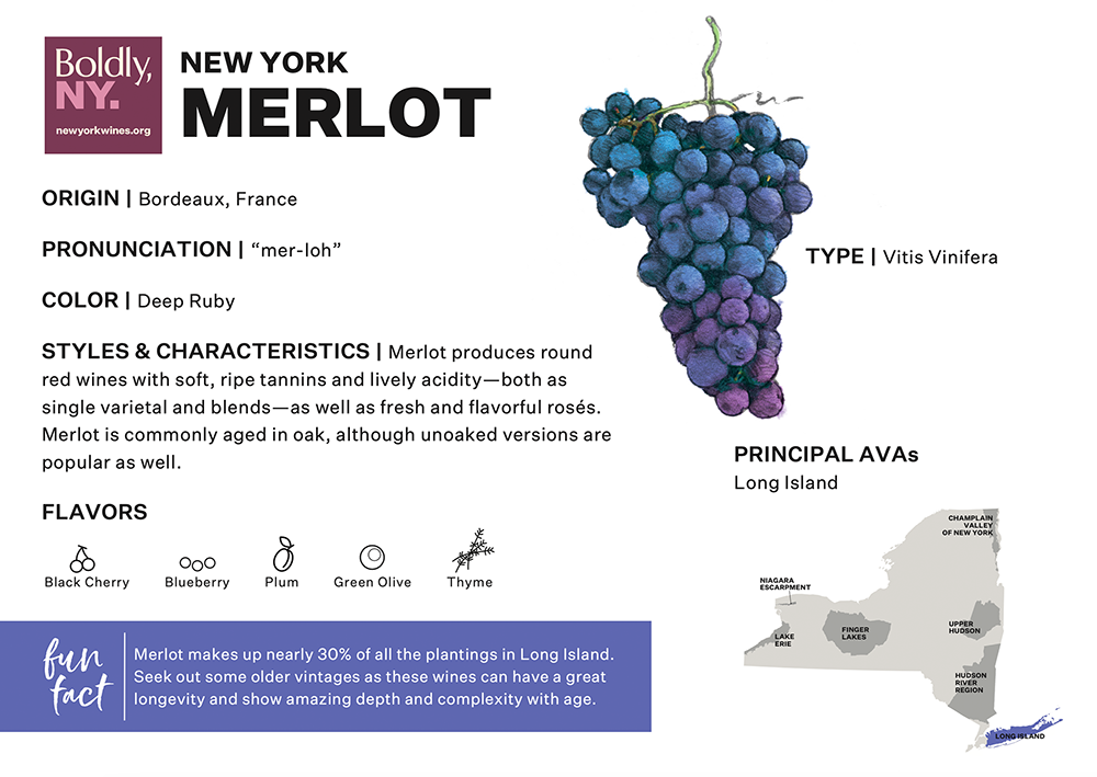 ブドウ栽培: メルローのブドウ樹は、樹勢が中程度で、中程度から高い収量です。発芽が早く、春の霜害の可能性が高まりますが、成熟が早いため、秋の激しい雨による損失を回避できます。メルローは、大きな赤い果実がゆるやかに房状に付いているのが特徴です。果実は他の黒ブドウ品種に比べて果皮が薄く、糖分が多く、タンニンが少なく、酸が柔らかいため、丸みのあるリッチな赤ワインが生まれます。