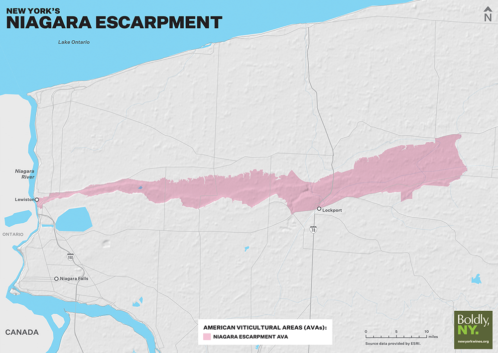 2005年に正式にAVAとして認定された。より広域のグレーター・ナイアガラ・リージョンは、州内で急速に成長しているワイン産地の1つである。ナイアガラ断崖とその周辺は、ニューヨーク州で最も温暖な気候を有する地域のひとつである。五大湖への近さ、独特な地形(断崖がオンタリオ湖から吹く温かい空気を閉じ込める)がユニークな特徴を生み出している。さらに、苦灰岩質石灰岩(ドロマイト)土壌、湖畔にみられる砂利混じりの沈泥(シルト)土壌、そして温暖な気候の組み合わせが、ブドウを始め様々な果物の栽培に理想的な環境を整えている。